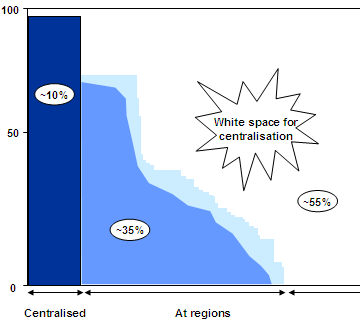 Surely we don’t have many activities to centralise? We already have a central hub for processing operations! We heard that from a fair section of our client organisation. They initially had operations spread across their branches. Some years ago, they had established a central hub and many regional hubs. Yet, Only a few prominent operations were centralised. Others were just regionalised. Regionalisation was inconsistent. Some branches still did these at their own premises. Branches still did the bulk of the work. We made a list of activities, surveyed all their branches and hubs, and got a good sense of which activities were happening at branches vs regionally vs centrally. ...