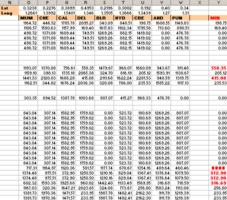 OK, we agree we need to centralise more. But do we really need additional hubs? If so, where? We’d shown that this bank could further centralise 55%. They had 10 regional hubs. We felt these weren’t enough. But how to prove it? For regional activities, the key factor is distance. (That’s why they’re regional and not central.) For example, cheque clearing can be delayed at most one day, to transfer the cheque to a nearby hub. Shipping them all to, say Gurgaon, would take 2-3 days and that’s too long. ...