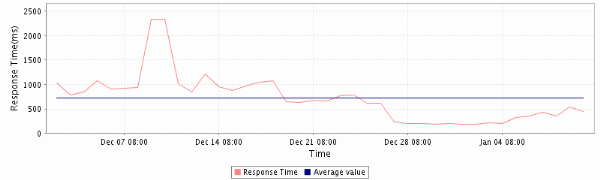 That dip there in response time is thanks to WP-SuperCache. My average page load time has dropped from 1 second to 0.25 seconds.
