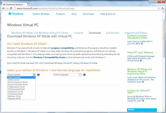 Here’s the easiest way to set up a Windows XP virtual machine that I could find. (This is useful if you want to try out programs without installing it on your main machine; test your code on a new machine; or test your website on IE6 / IE7 / IE8.) Go to the Virtual PC download site. (I tried VirtualBox and VMWare Player. Virtual PC is better if you’re running Windows on Windows.) If you have Windows 7 Starter or Home, select “Don’t need XP Mode and want VPC only? Download Windows Virtual PC without Windows XP Mode.” If you have Windows Vista or Windows 7, select “Looking for Virtual PC 2007?” Download it. (You may have to jump through a few hoops like activation.) Download Windows XP and run it to extract the files. (It’s a 400MB download.) Open the “Windows XP.vmc” file – just double-clicking ought to work. At this point, you have a working Windows XP version. (The Administrator password is “Password1”.) Under Tools – Settings – Networking – Adapter 1, select “Shared Networking (NAT)” That’s pretty much it. You’ve got a Windows XP machine running inside your other Windows machine. ...