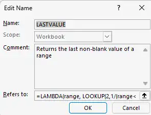 Ever since Excel introduced the LAMBDA function, I've been itching to use it in real life. I got my first chance today. We track the skill index of our different teams (consulting, analytics, technology, etc.) like this: TeamSkill IndexApr-23May-23Jun-23Jul-23Consulting0%0%Analytics33%33%Technology72%72%etc. The "Skill Index" column should pick the LAST value. If Apr-23 is filled, use that. But if May-23 is also filled, use that. ...