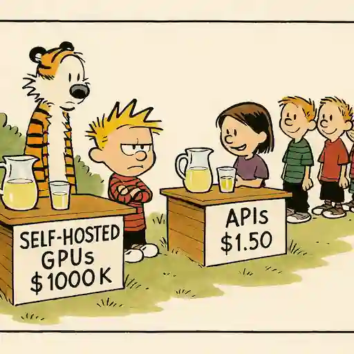 Say you want to use Llama 3.3 70b Instruct. You could: Use it via an API. OpenRouter offers it at ~12 cents / MTok. Azure offers it at 71 cents. Your price may vary. Self-host it on a major cloud provider. Azure offers A100 80GB at ~$3.67 / hour. In a day, you could generate ~0.5-1M tokens. Self-host it on an emerging cloud provider. Lambda Labs offers A100 80GB at ~$1.79 / hour. Again, ~0.5-1M tokens a day. Clearly, self-hosting is cheaper if you run it continuously. Let’s say we run for 1 million tokens every day. Then: ...