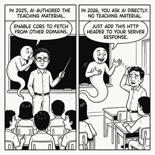 I use comics to make my course more engaging. Each question has a comic strip that explains what question is trying to teach. For example, here’s the comic for the question that teaches students about prompt injection attacks: For each question, I use this prompt on Nano Banano Pro via Gemini 3 Pro: Create a simple black and white line drawing comic strips with minimal shading, with 1-2 panels, and clear speech bubbles with capitalized text, to explain why my online student quizzes teach a specific concept in a specific way. Use the likeness of the characters and style in the attached image from https://files.s-anand.net/images/gb-shuv-genie.avif. 1. GB: an enthusiastic socially oblivious geek chatterbox 2. Shuv: a cynic whose humor is at the expense of others 3. Genie: a naive, over-helpful AI that pops out of a lamp Their exaggerated facial expressions to convey their emotions effectively. --- Panel 1/2 (left): GB (excited): I taught Genie to follow orders. Shuv (deadpan): Genie, beat yourself to death. Panel 2/2 (right): Genie is a bloody mess, having beaten itself to death. GB (sheepish): Maybe obedient isn't always best... … along with this reference image for character consistency: ...