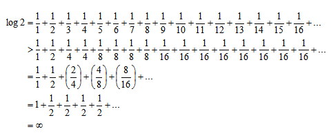 For the log 2 series, it’s not absolutely convergent. The series diverges, as shown below: