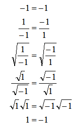 (Proving -1=1 is the same as proving 1=2. Once you have one wrong proof, you can prove every other falsehood.)