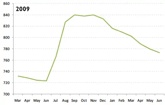 This result is consistent across years. In 2009 and 2010, you see a similar pattern.
