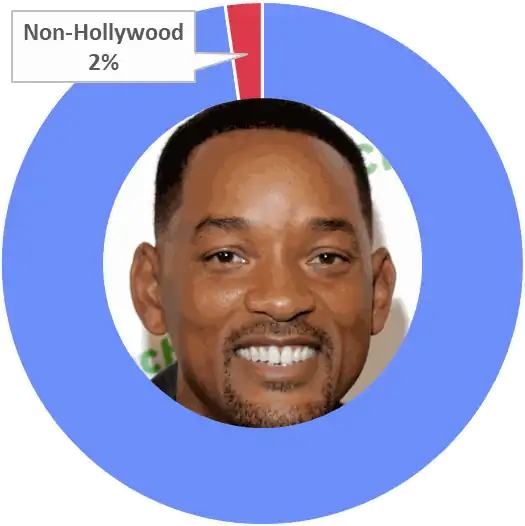 His every co-star is a Hollywood actor, except the Spanish actor Jordi Mollà in Bad Boys II, and the Dutch actor Marwan Kenzari in Aladdin. Will Smith acts with just 2% of foreign co-stars.