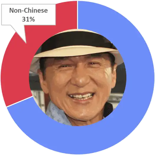 Of his 224 co-stars, 70 are non-Chinese. Jackie Chan acts with over 30% foreign co-stars.