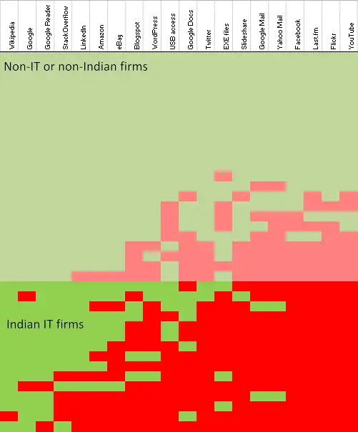 (I had intended to write this post sarcastically, a bit like my web freedom survey. But sarcasm’s confusing to read. So I’ll just be straight and mild.) If you’re a well-paid professional in an Indian IT services firm, your freedom is limited. (This holds if you’re a student, too.) You clock-in and clock-out. You’re searched on your way in and out. You need your boss’s permission to leave. You work on what you’ve been told to work on. You cannot be trusted to freely access the Internet. The last bit worries me the most. Perhaps because in all the other cases, there are humans I can put to shame or fight, face-to-face. Or because I am a Net addict. Don’t know why. ...