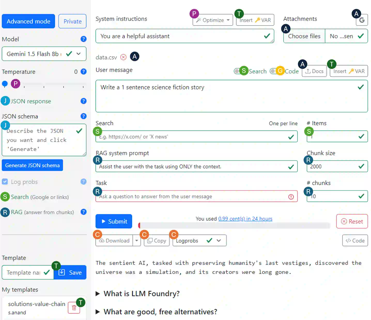 At Straive, only a few people have direct access to ChatGPT and similar large language models. We use a portal, LLM Foundry to access LLMs. That makes it easier to prevent and track data leaks. The main page is a playground to explore models and prompts. Last month, I tracked which features were used the most. A. Attaching files was the top task. (The numbers show how many times each feature was clicked.) People usually use local files as context when working with LLMs. ...