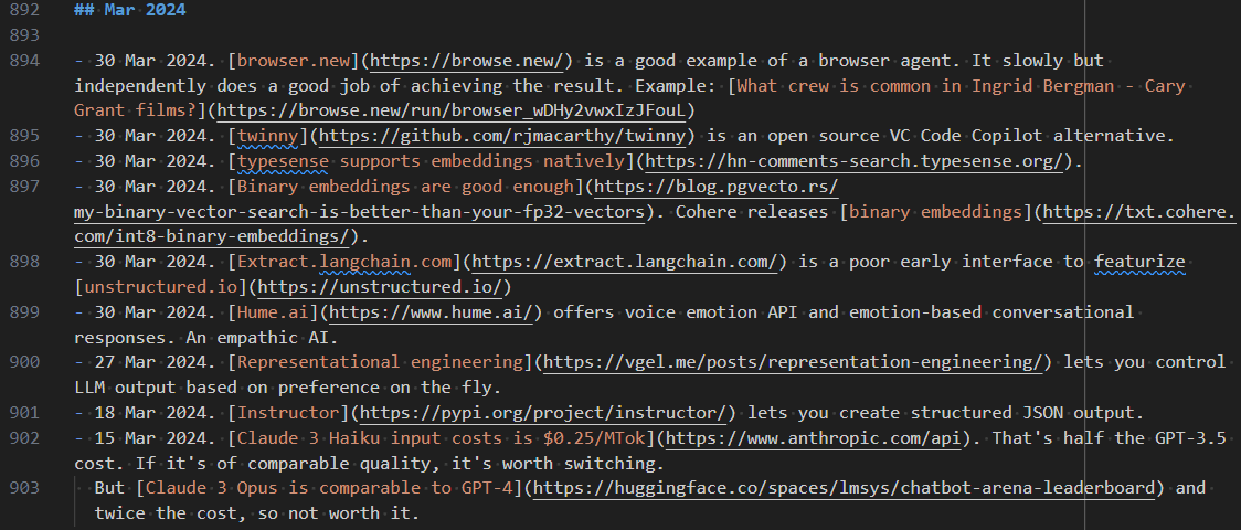 One of my goals for 2024 is to “Compound long-term goals, daily.” Learning is one of those. Some people publish their learnings as weekly notes, like Simon Willison, Thejesh GN, Anil Radhakrishna, and Julia Evans. I follow their notes. I started doing the same, quietly, to see if I could sustain it. It’s been a year and it has sustained. I’m finally publishing them. My week notes are at til.s-anand.net. Here’s the source code. ...