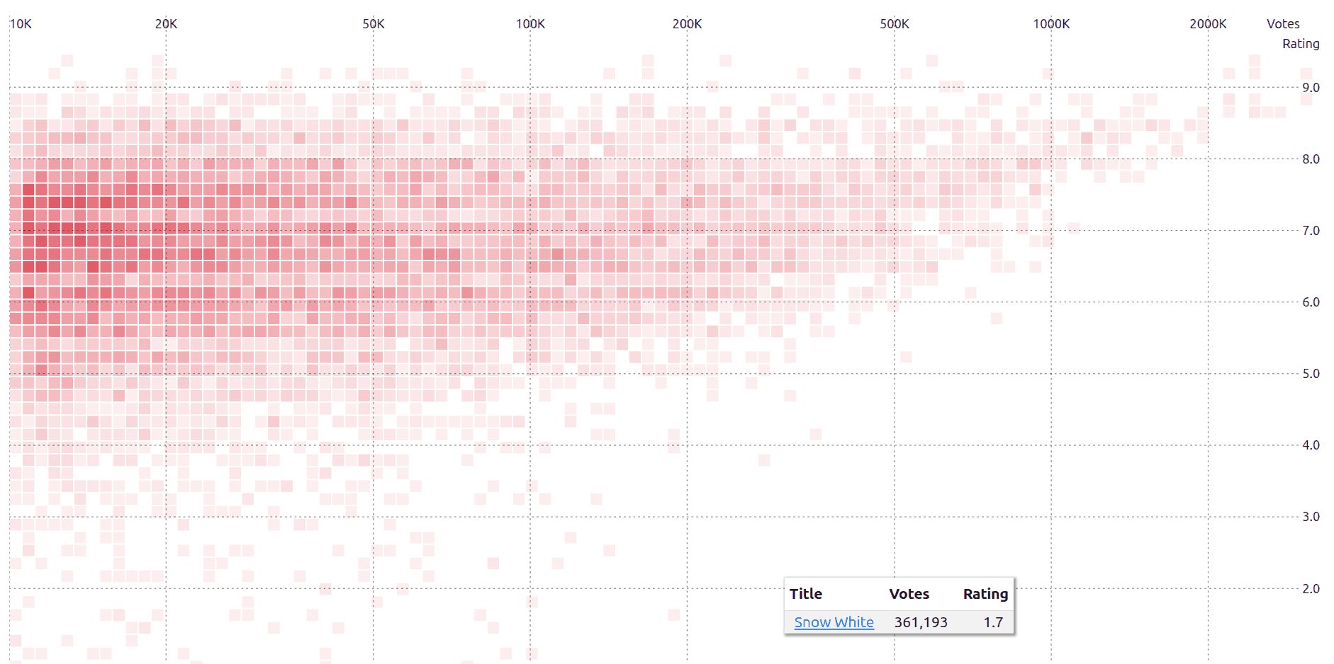 Snow White (2025) is an outlier on the IMDb. With a rating of 1.8 and ~362K votes, it’s one of the most popularly trashed movies. Prior to Snow White the frontier of popular bad movies was held by the likes of Radhe, Batman & Robin, Fifty Shades of Gray, etc. Snow White sets a new records. Snow White (IMDb): https://www.imdb.com/title/tt6208148/ IMDb explorer: https://sanand0.github.io/imdb/ LinkedIn