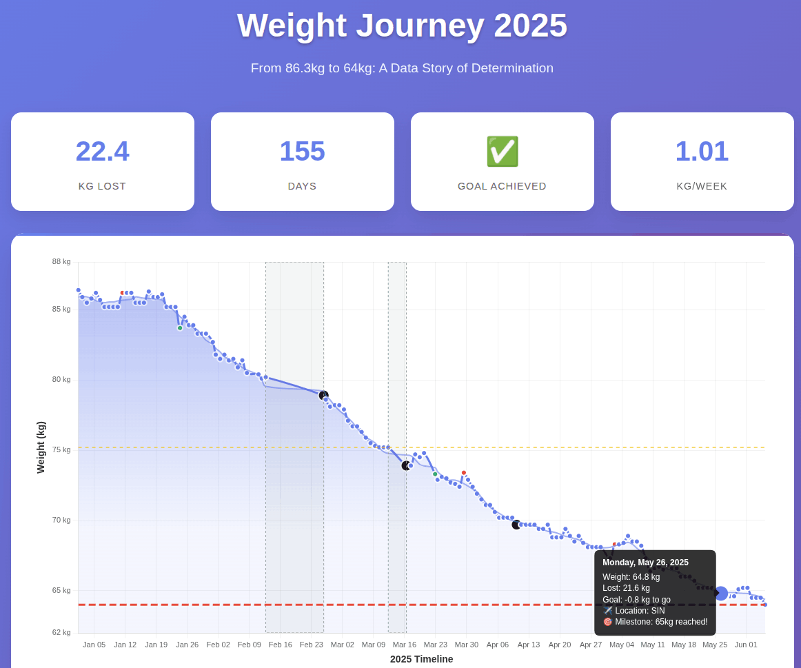 I lost 22 kg in 22 weeks. How? Skipped lunch, no snacking. (That’s all.) Why? Cholesterol. When? Since 1 Jan 2025. I plan to continue. How far? At 64 kg, I’m at 22 BMI. I’ll aim for 60 kg. Is fasting 12 hours OK? Ankor Rai shared Dr. Mindy Pelz’s chart that fasting benefits truly kick in after 36 hours. Long way for me to go. No exercise? Exercise is great for fitness & happiness. Not weight loss. Read John Walker’s The Hacker’s Diet. ...