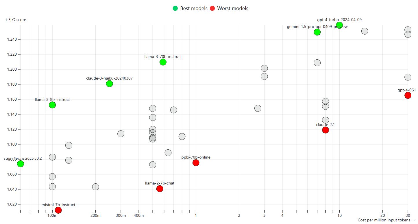 There are 4 frontier #LLMs today. No other (popular) model beats them on BOTH cost and quality. llama-3-8b-instruct claude-3-haiku-20240307 llama-3-70b-instruct gpt-4o-2024-05-13 This list changes rapidly. But in practice, it means there’s little reason to use any other LLM. They beat every other model on cost and quality (measured by the LMSYS Arena ELO score.) I opened Straive + Gramener’s keynote yesterday at marcus evans Group’s Digitech forum with this. Strange that this is not well known. Especially as switching from GPT-4 to Claude 3 Haiku can shrink a $1.2 million Gen AI budget to just $10K. ...
