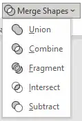 Let’s say you have a rectangle and a circle. You can select both of these shapes and in the Shape Format > Merge Shapes dropdown, you can: