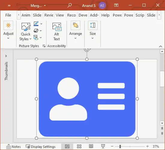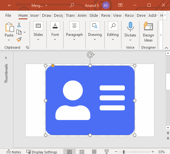 Finally, copy all these shapes over the card boundary on the next page. Select the card boundary first. Then select these copied shapes (3 address lines, head, and bust). Select Shape Format > Merge Shapes > Subtract.