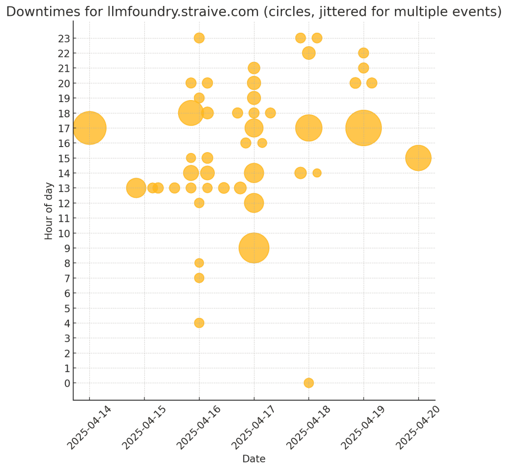I normally open Excel when I need a fast chart or pivot. For instance, we track outages of our semi‑internal server, LLM Foundry.