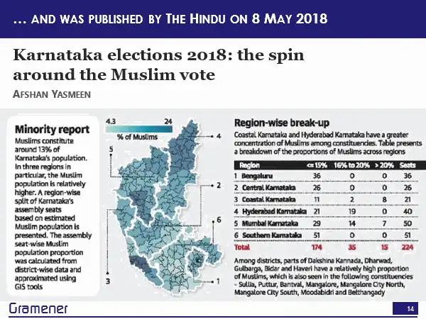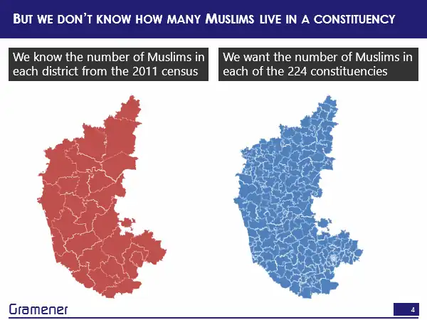 The story begins at the Karnataka elections in 2018. Say about one-eighth of the voters are Muslim, and both the Congress as well as the JD(S), were trying to get their support while on the other hand, BJP was taking potshots saying both of them are just trying to appease the community. The Hindu newspaper wanted to write a piece about how large a factor this is, and where all the Muslim vote is strong. You see, here we have a problem.