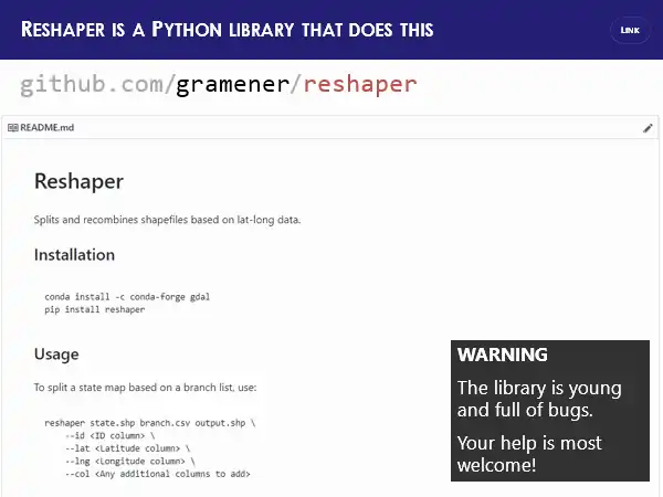 How much of this can we do in Python? There is a library called reshaper that we put together. The reshaper Library is something that’s very work in progress by the way. You can find it github.com/gramener/reshaper. It does exactly what I’m about to show you right now.