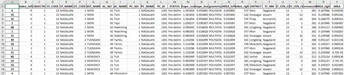 So, it says, for instance, that this particular assembly constituency is broken up into three regions, each of which maps to different districts. So some of it overlaps with more and some of it with shift saagar some of it with data and in fact, these are across different states and what is the area of each of these, along with a variety of other metrics that you can calculate and the proportion of area that is overlapping. Once you have this kind of data set, what can we do with it? So let’s revert back to our story.