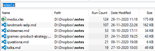 What made this change possible is Everything, a fast file search tool on Windows that lets me find files as I type. For example, if I’m looking for my notes on SlideSense, I just type “notes s” and it appears on the list.