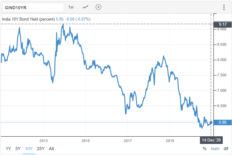 As I was exploring 10-year Gilt Funds (mutual funds that invest in the Indian Government’s 10-year bond), I noticed that they had a pretty high yield – mostly over 10%.