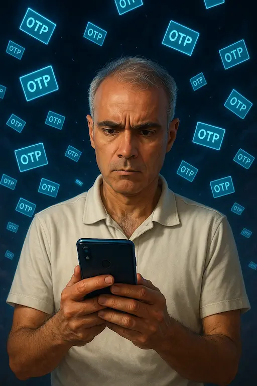 PS: The featured image was generated using the prompt: Edit this image so that this photo of me looks at a smartphone as a surreal storm of OTP notifications rains down around me.
