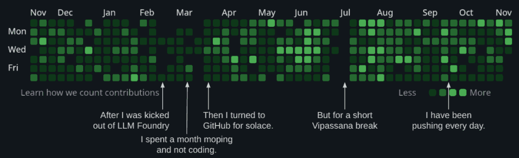 I was testing LLMs’ sense of Tamil humor with this quote: Extend this post with more funny Tamil words that end with .ai - mentioning why they’re funny. Chenn.ai is the artificial intelligence capital of India. Kadal.ai Kad.ai Dos.ai Vad.ai Ad.ai Thal.ai Mallig.ai Aratt.ai And finally Podad.ai All spoken in namma bash.ai 😅 The Chinese models didn’t fare well. DeepSeek made up words. Mood.ai - An AI that perfectly captures your mood. Sokk.ai - The AI for when you’re bored. Thanni.ai - A hydration assistant. Qwen too. ...
