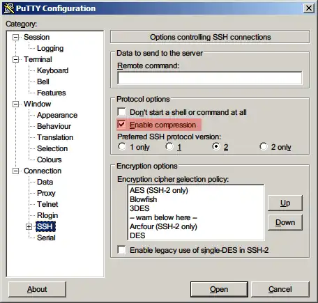 10. Under **Connection > SSH**, select **Enable Compression**.