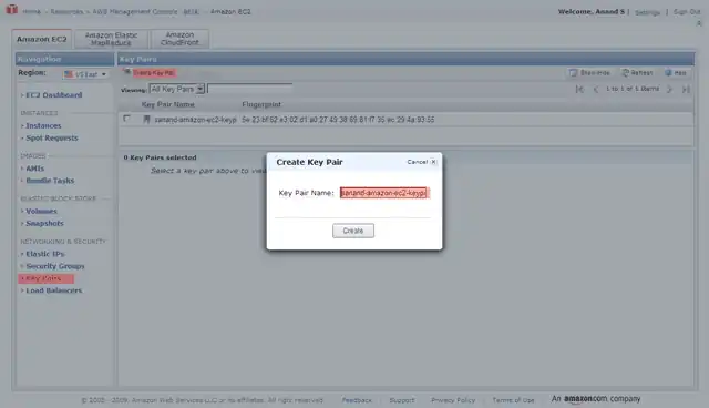 - Click on Key Pairs, select Create Key Pair and type in some name. Click on the Create button and you’ll be asked to download a key file. Save it somewhere safe.