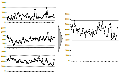 But we couldn’t just say that in a slide. So we collected data about the daily volumes at three hubs, and it clearly showed the result. Var(A) + Var(B) + Var(C) > Var(A+B+C).