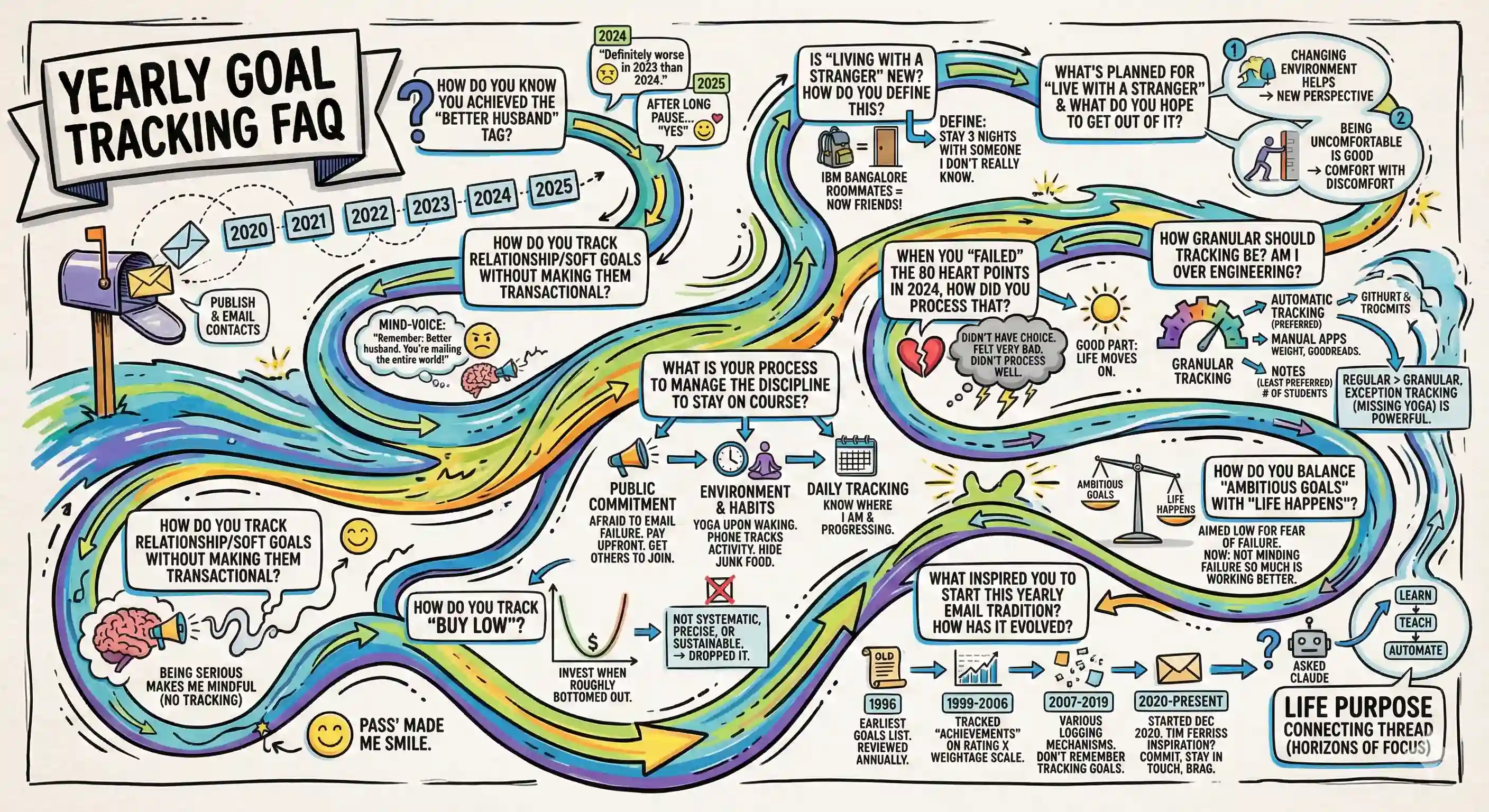 I started emailing goals in Dec 2020. Inspired by Tim Ferriss, maybe? It was a way to commit myself, stay in touch, and brag a bit.