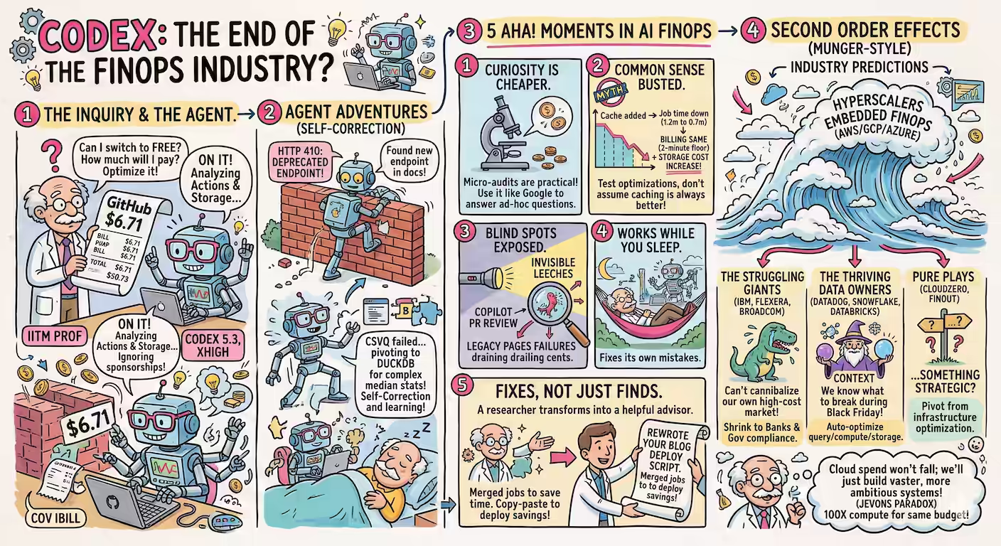 I have a GitHub Education since I teach at IITM. But if I switch back to a free account, how much would I need to pay? I asked Codex (5.3, xhigh): My GITHUB_TOKEN is in .env. Go through my GitHub billing. Ignore the $100 sponsorships I make. Other than that, my current metered usage is $6.71 for Feb 2026 (which is included in my billing plan). $0.35 comes from sanand0/exam and $0.34 from sanand0/blog and so on. That’s coming mostly from “Actions Linux”, occasionally “Actions Storage”. Pick a few of the top repos and tell me what I should do to make the cost zero - or reduce the cost as much as possible. See if there’s a pattern across repos. ...